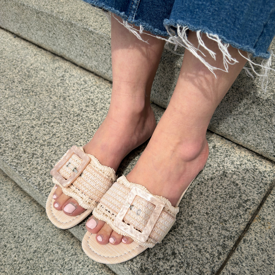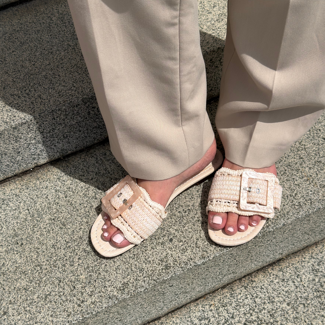 The Isla Flat is an effortless summer staple. Hand-woven raffia brings natural texture and laid-back charm, while the sleek almond-toe silhouette keeps it refined. Lightweight and versatile, this flat pairs as easily with denim as it does with airy dresses — the ultimate warm-weather essential.