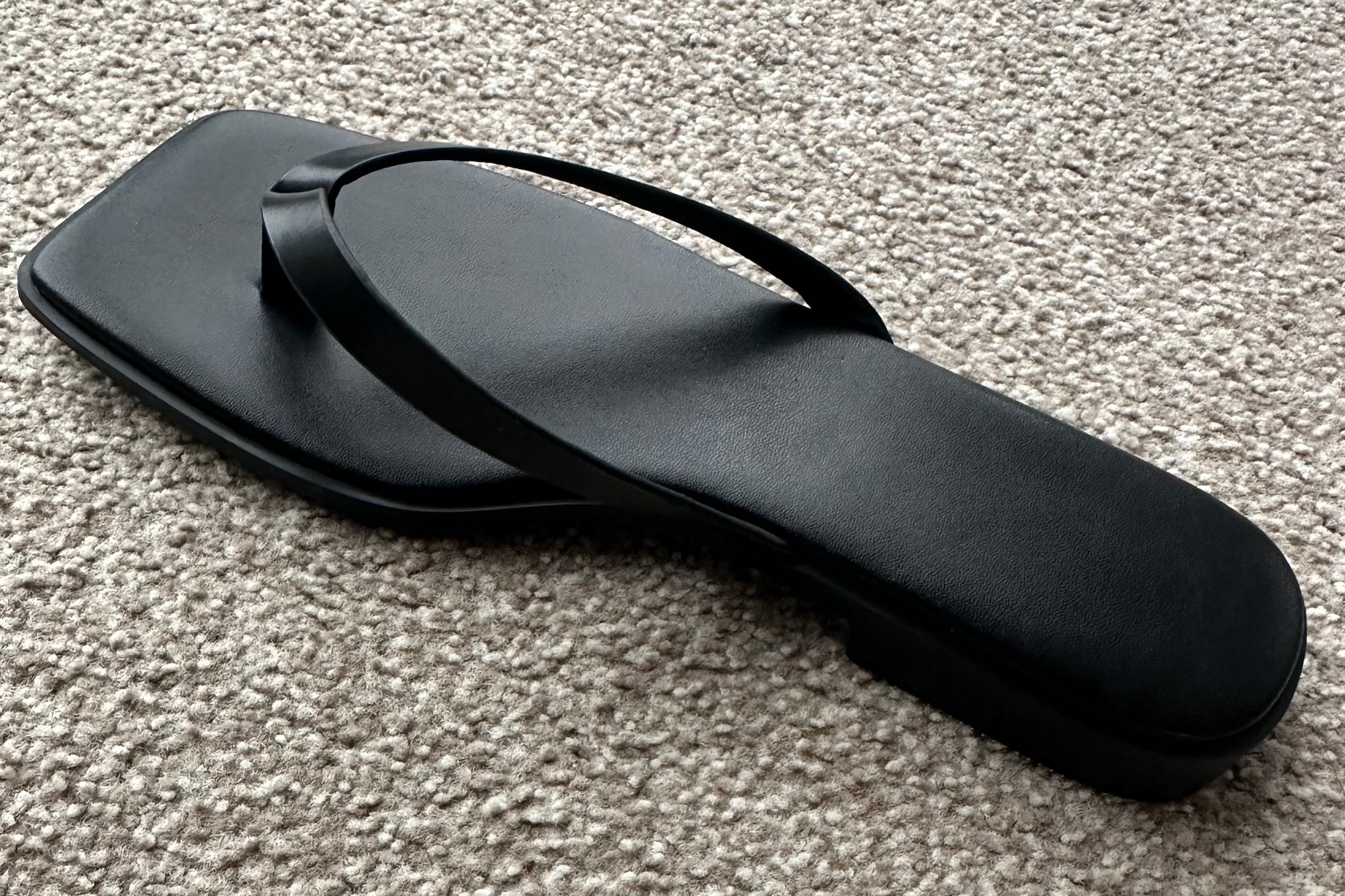 Elevate your everyday style with the Serenity sandal — a black, wide-fit leather split-toe design with a modern square front and all-day flat sole comfort. Ideal for casual or relaxed outings, crafted from ultra-soft leather to reduce friction and enhance fit.